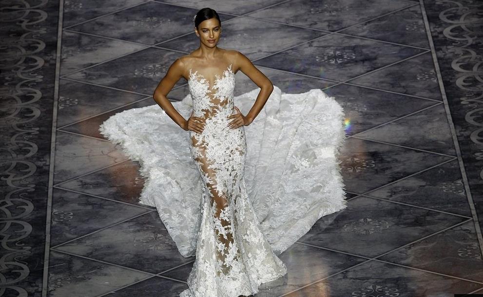 伊莲娜白色透视露背婚纱走台 美丽似公主