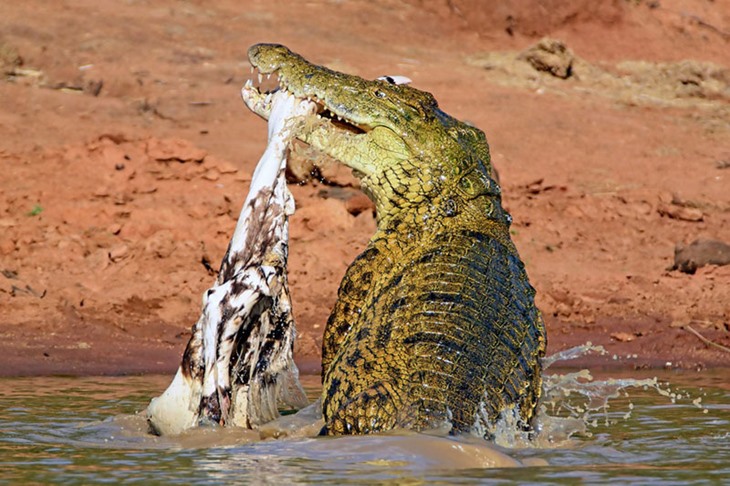 鳄鱼将斑马撕成碎片瞬间