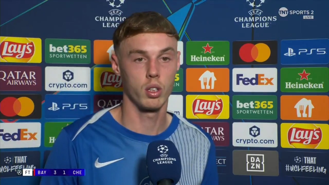 在欧冠联赛阶段首轮客场1-3负于拜仁慕尼黑之后,为切尔西打进一球的帕尔默接受了来自TNT体育的采访。科尔,对于切尔西来说,这是不是一个令人沮丧的夜晚?是的,说实话,我觉得我们本来应该得到更多。在26分钟就以0-2落后,是不是很意外